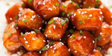 Sliced Eggplant pieces battered and fried then tossed in a Sweet ‘n Spicy Korean Gochujang Sauce and sprinkled with Sesame Seeds....7.5