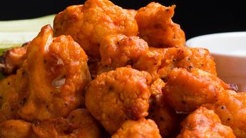 Lightly Battered & Fried Broccoli Florets Tossed Buffalo Style and served