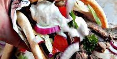 Grilled Plant-Based Beef Strips on a Warm Pita with Tomato, Onion, Cucumbers and Tahini Sauce. Served with Fries….14.55