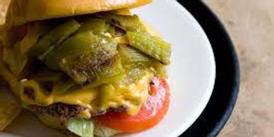 A Burger topped with Cajun Style Mushrooms and Peppers and Smothered