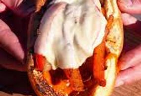 An Israeli Favorite! Eggplant, Hummus, Hard Boiled Egg, Pickle, Onion, Tomato, Cucumber, Tahini & Amba (Mango Hot Sauce) Sauces. Served w/ Fries....13.65
