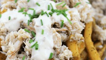 Our Delicious Fries seasoned with Old Bay, topped with White American Cheese Sauce, Real Crab Meat and garnished with Scallion..............8