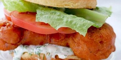 Beer-battered tilapia, served w/ tarter sauce on the side